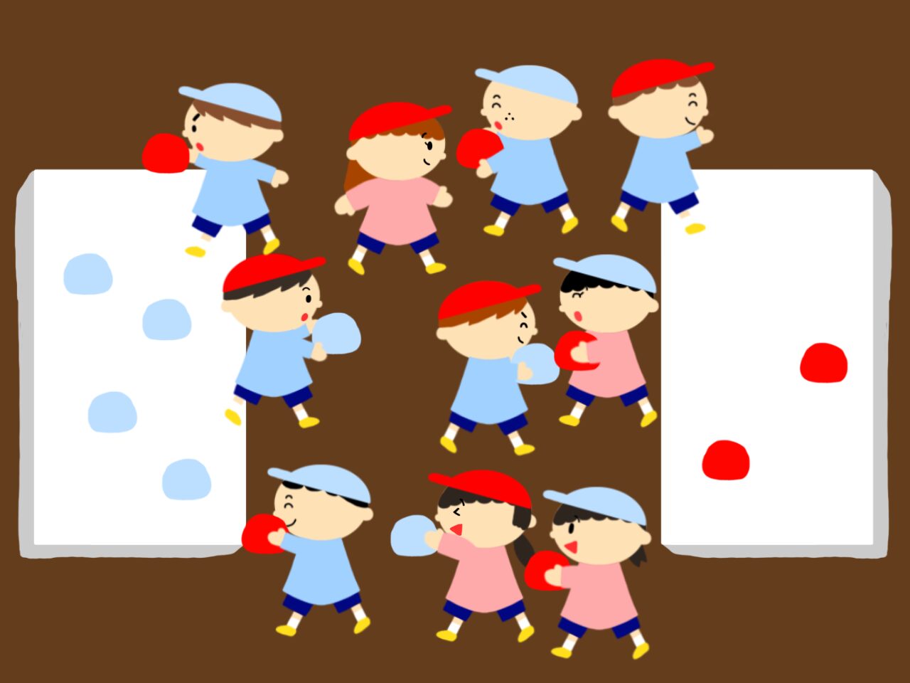 • 終了の合図の時に持っている玉は、必ずその場で手放すように伝えます。全員の目で見てチェックしましょう。