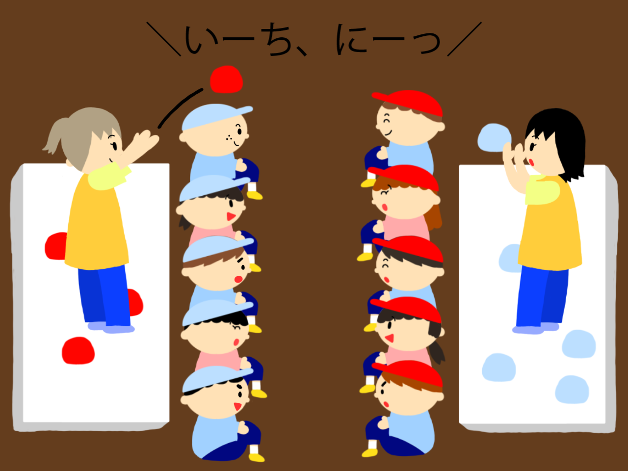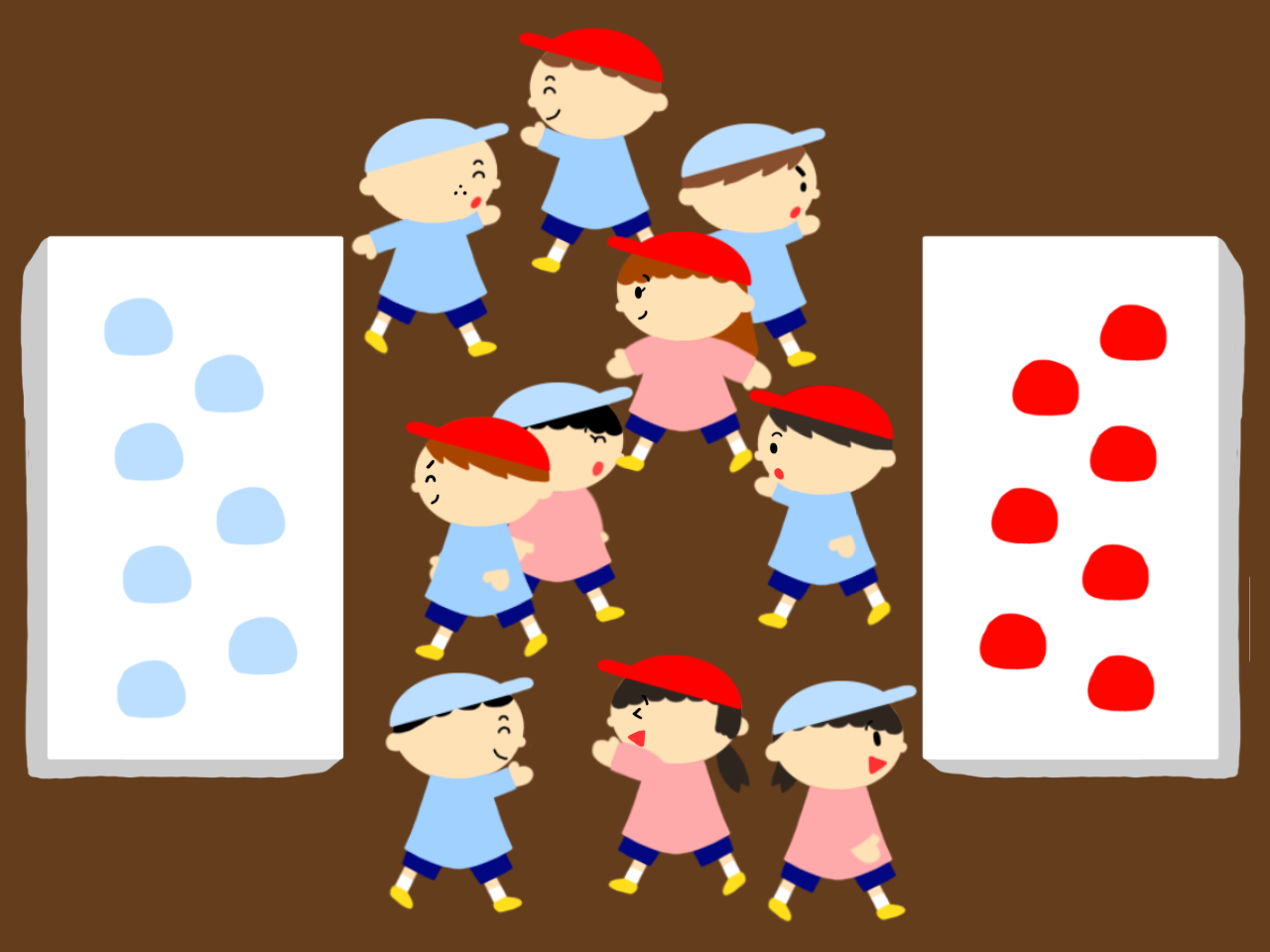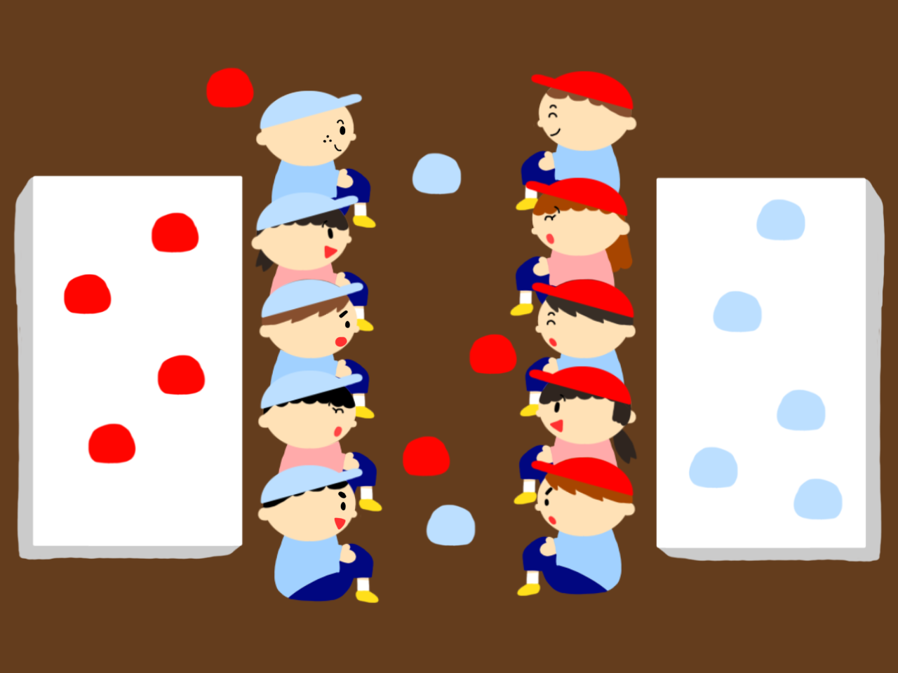片方のチームは赤白帽子を裏返すなど工夫をしましょう。