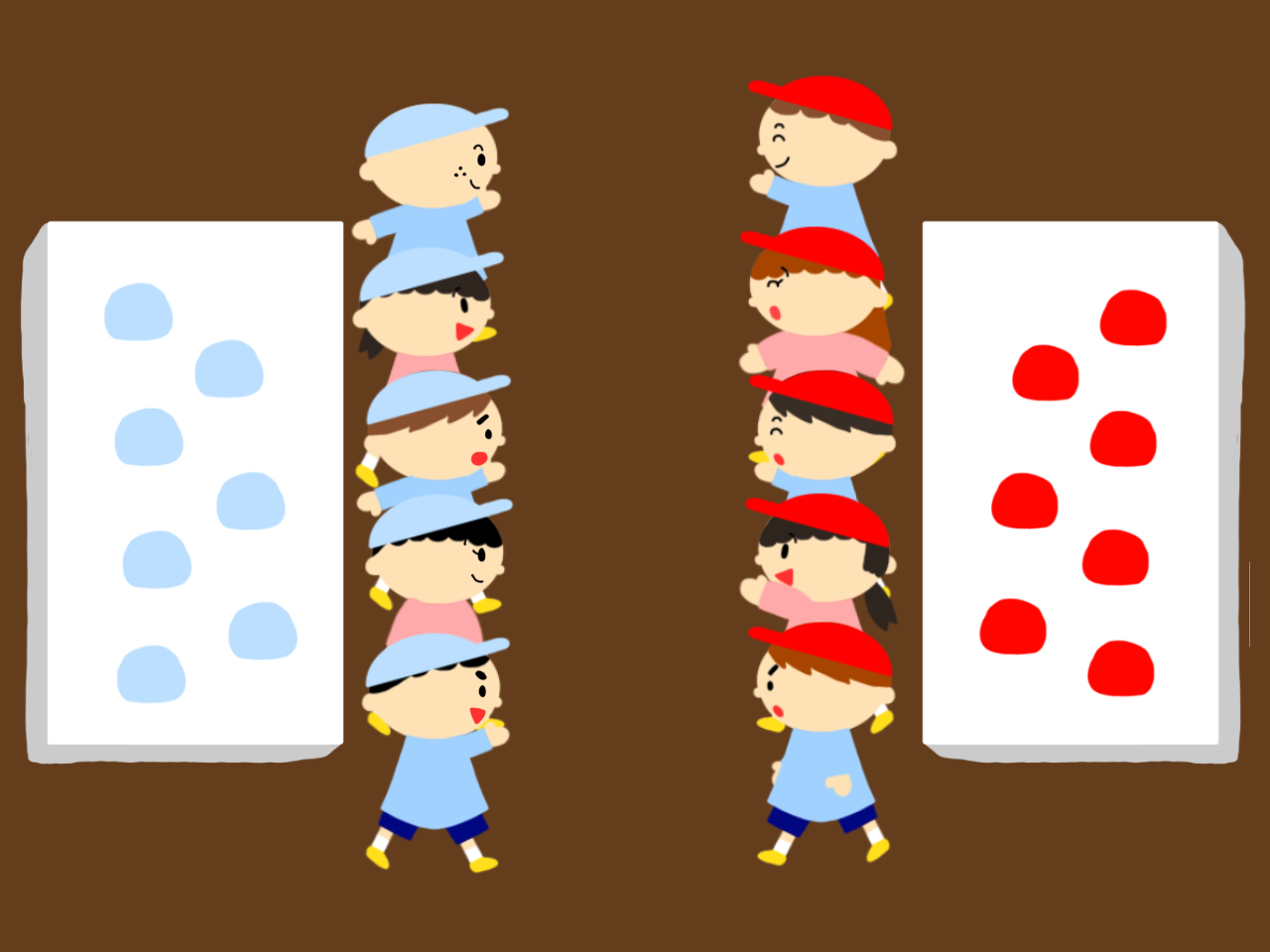 • 両手が塞がると転んだ時に手をつけないため、玉は必ず「1つずつ」運ぶことを約束しましょう。