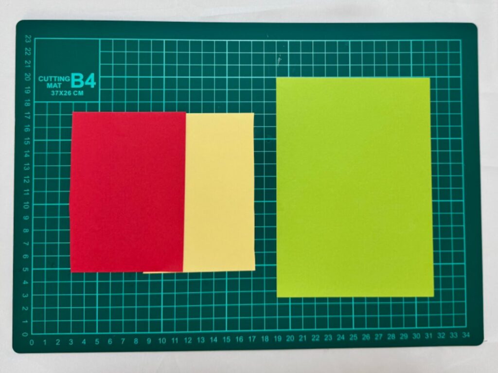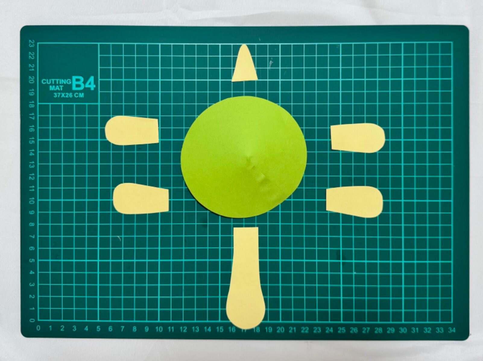 のり部分を隠すように切り込みから画用紙をずらして貼り付けます。中央がくぼんで少し立体的になります。