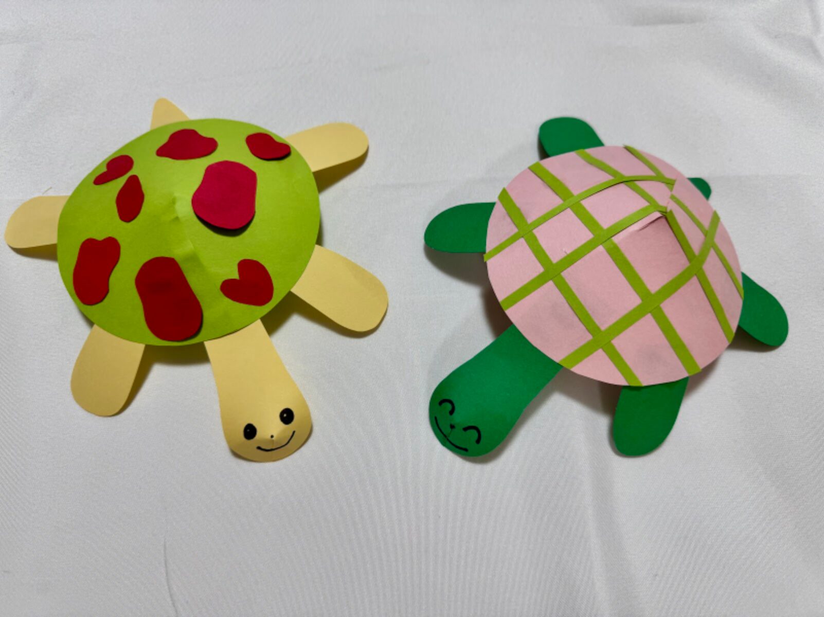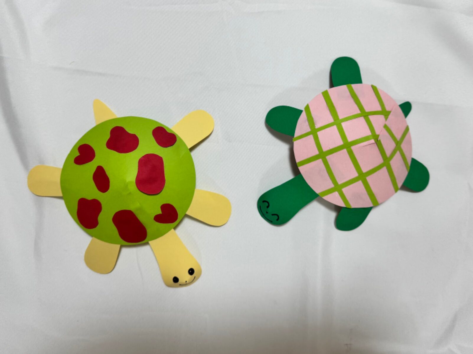 かめは子ども達にとって身近な小動物であり、柄や色などで個性を出しやすい題材ですよね。