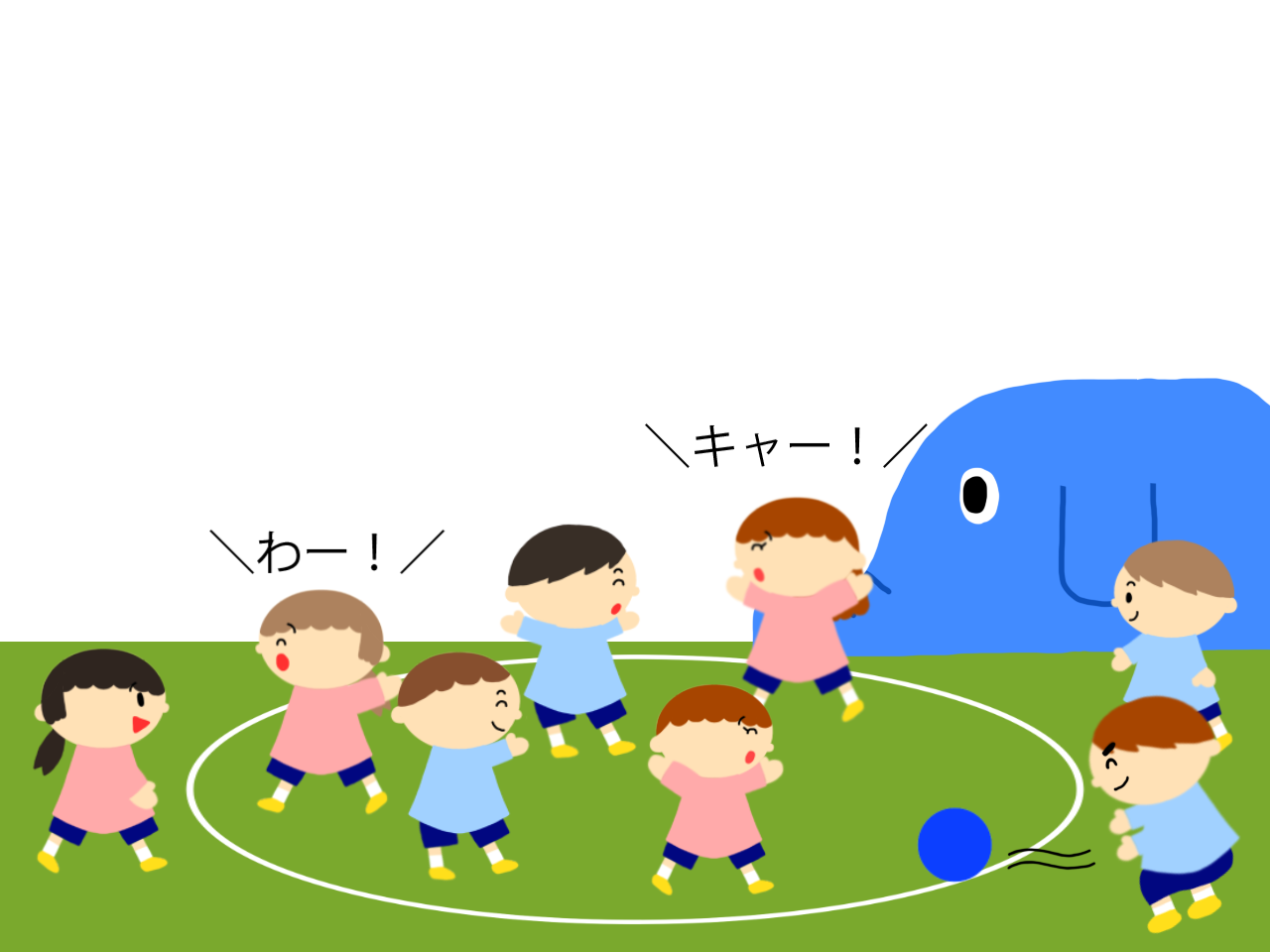 - ボールに親しみ、感触や跳ね方、危険性などある程度理解している。