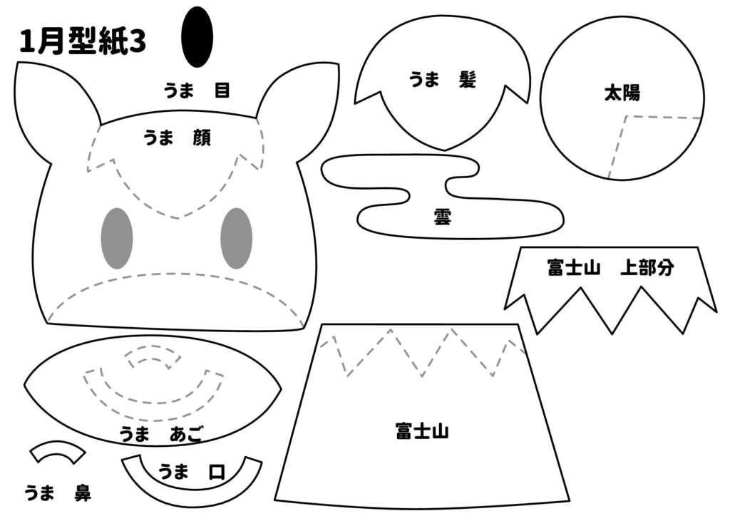 うま・背景(富士山・太陽・雲)