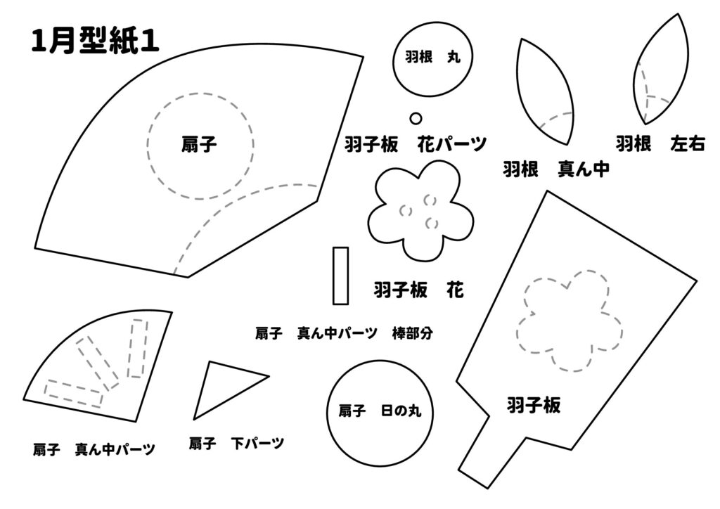 壁紙用型紙① 扇子・羽子板・羽根