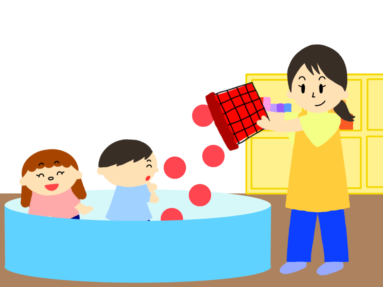- ボールを踏んで転倒しないように、ボールプールの外に出たカラーボールをこまめに拾う
