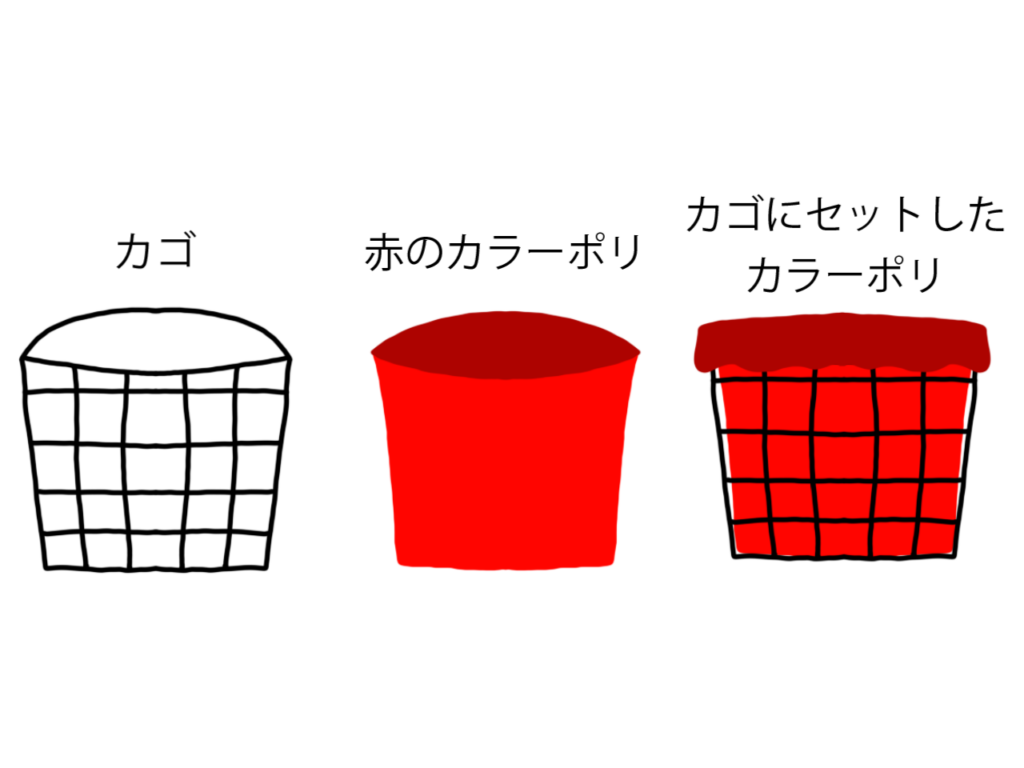 - 色ごとにカラーボールを分けてカゴに入れておく