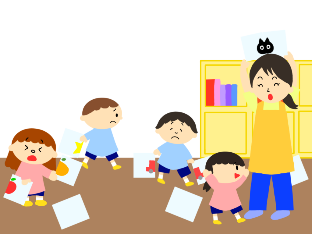 - めくったカードが間違っていた場合は裏返して戻すように伝え、他の子がめくれるようにしましょう