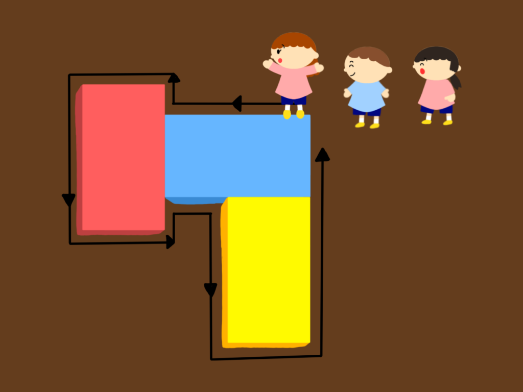 - 慣れてきたらマットを様々な形で組み合わせ、外周を長く角を多くしてコースをアレンジしましょう!