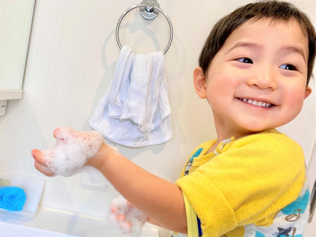 歌に合わせて手を洗ったり、「指の間にバイキンがかくれんぼしてるよ」と声をかけたりすることで、楽しみながら丁寧な手洗いを意識できるようになります。