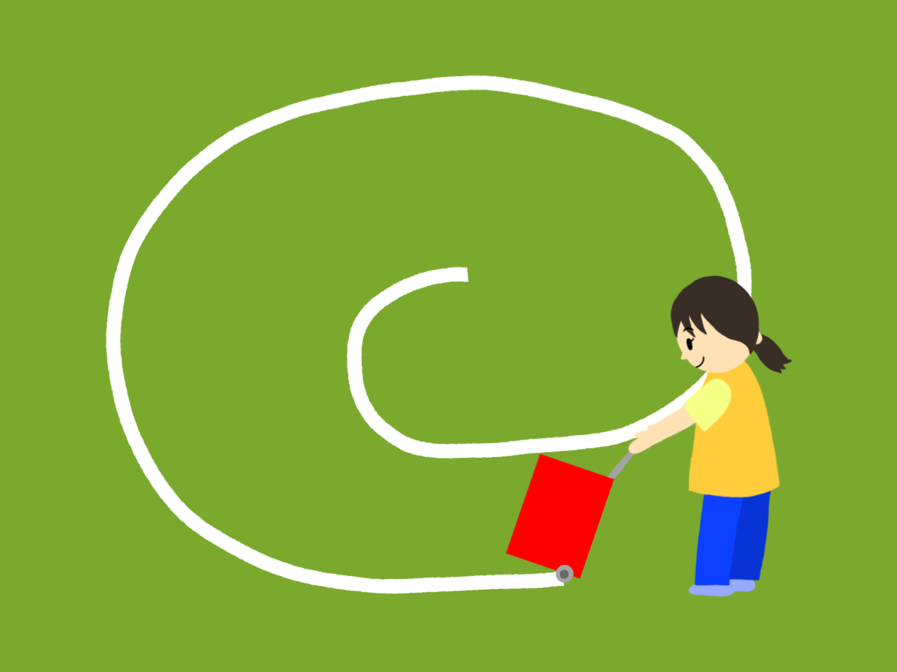 - 白線のぐるぐるは大きめに書きましょう。特に中心部分は子供が数人並べるスペースがあるとわかりやすいです。