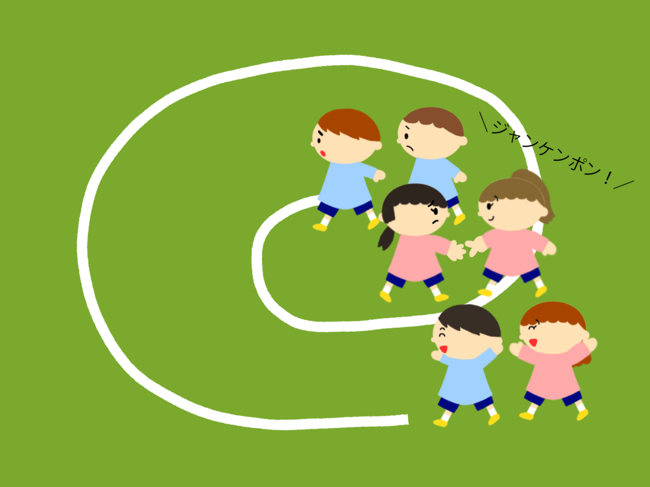 狭いスペースでもしっかり身体を動かして遊べる遊び、「ぐるぐるじゃんけん」について紹介します!