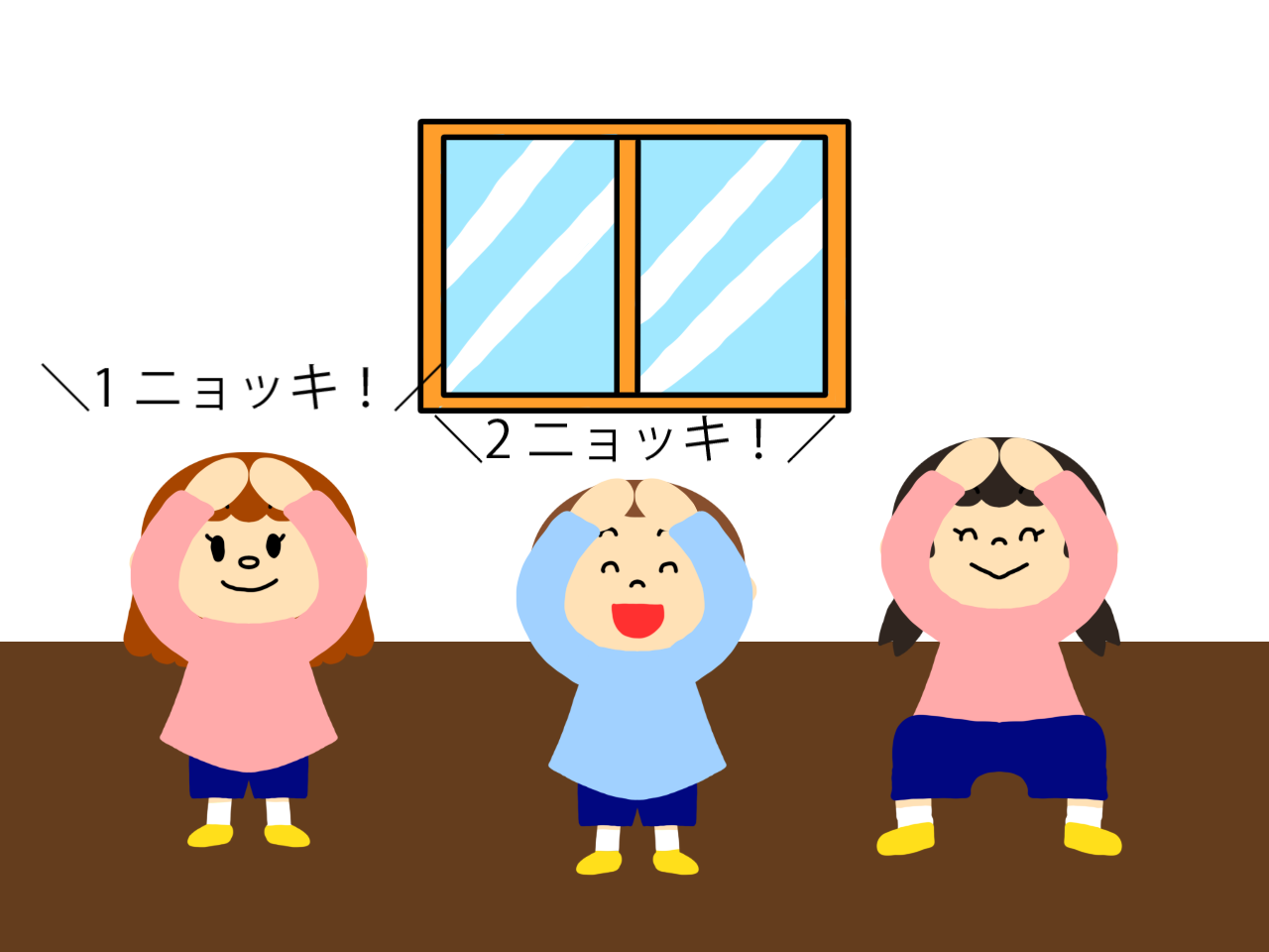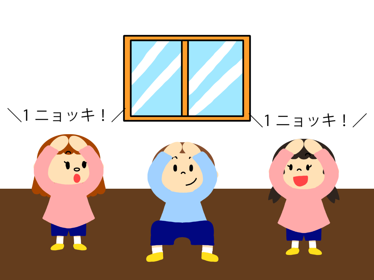 誰も同時に立ち上がらなかった場合は、しゃがんでいる人が「2ニョッキ!」「3ニョッキ!」と続きます。全員のタイミングが被らずに立ち上がれたら成功です。