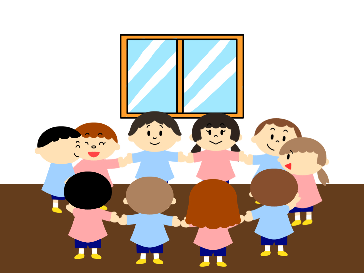 - グループ毎に円になって向かい合い、しゃがんでぶつからない距離感を保ちましょう。