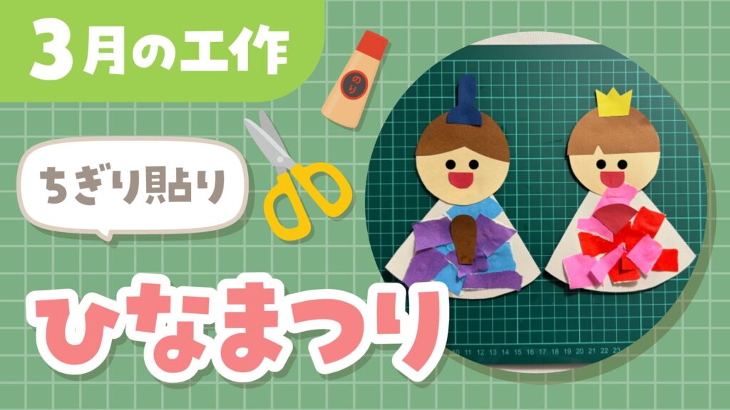 3月は桃の節句、ひな祭りです♪ひな人形を飾っているお家もあり、子どもたちになじみのある行事ですね。今回はちぎりはりで作るお雛様とお大理様の作り方を紹介します!
