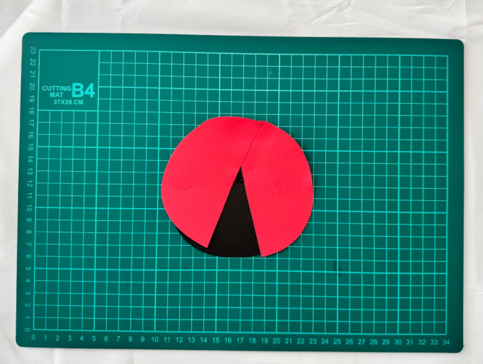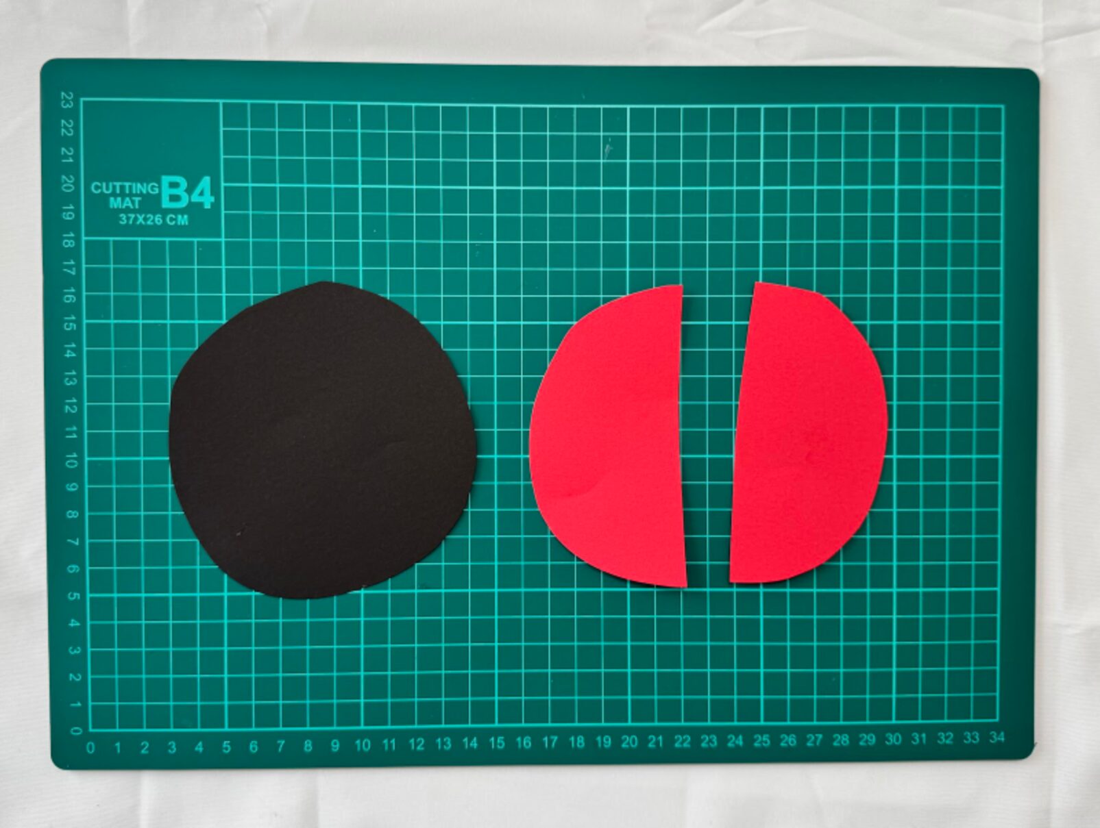 赤い円を半分に切ります。