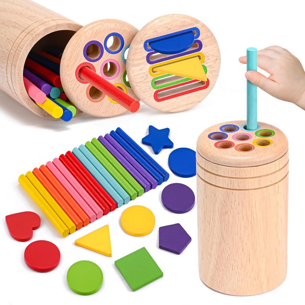 PBQWXESの「モンテッソーリ木のおもちゃ」は、形合わせや色分けを通じて遊びながら知育につなげられる木製玩具です。